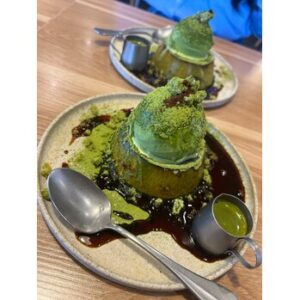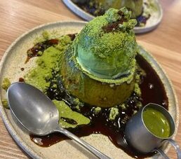 SNSでもよく見る抹茶たっぷりのプリン!