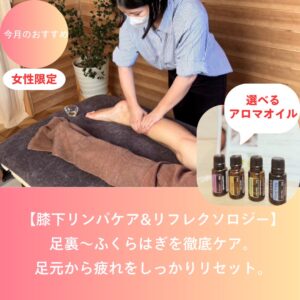 アロマを使った【膝下リンパ&リフレクソロジー】のクーポンもオススメです(*^^*)